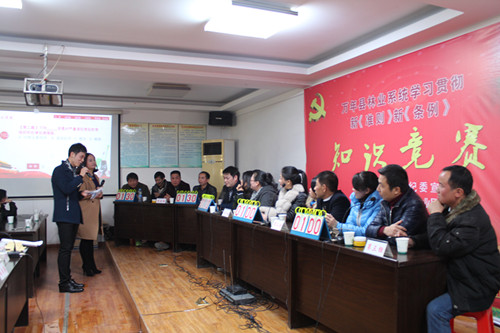 12月18日, 万年县林业系统学习新《准则》和新《条例》知识竞赛活动在县林业局五楼举行,来自林业系统的七个学习小组,21名选手参加竞赛活动。