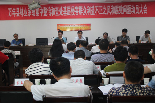 7月8日,在bet365365体育在会议室举行林业系统集中整治和查处基层侵害群众利益不正之风和腐败问题动员大会。bet365365体育在集中整治和查处基层侵害群众利益不正之风和腐败问题工作领导小组第一组长bet365365体育在局长陈德平、组长bet365365体育在党委书记张华耀、万年县纪委党风政风监督室主任邱胜东、万年县纪委第四纪工委书记张新峰、bet365365体育在党委委员、武装部部长许武科和bet365365体育在党委委员、总工程师姜任才等领导和万年县林业系统干部职工参加了万年县林业系统集中整治和查处基层侵害群众利益不正之风和腐败问题动员大会。