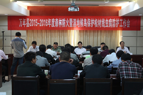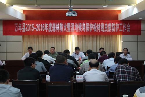 10月16日,我县2015-2016年森林防火暨湿地候鸟保护松材线虫病防护工作会议在县政府五楼会议室召开。县委副书记、县长胡剑飞,县委常委、农工部长邱冬春,县人武部部长周旭方,县政府副县长江德明出席会议。县森林防火指挥部成员单位及各乡镇相关负责人参加会议。