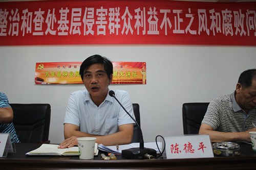 bet365365体育在集中整治和查处基层侵害群众利益不正之风和腐败问题工作领导小组第一组长、bet365365体育在局长陈德平在集中整治动员会上强调"万年县开展林业系统集中整治和查处基层侵害群众利益不正之风和腐败问题活动,最终目的就是达到:"群众不求人,干部守规矩"。陈德平局长要求在集中整治中三个到位:一是认识到位;二是措施到位;三是责任到位。围绕三个方面查找问题:一是处事不公的问题;二是以权谋私的问题;三是作风不实的问题。把握三个结合:一是集中整治与"两学一做"相结合;二是单位与个人相结合,同步进行;三是自查与追查相结合。抓住三个关键:一是关键人员;二是关键领域;三是关键事项。力争做到三化同步:一是权利清单化;二是过程公开化;三是决策民主化。认真开展集中整治,切实维护群众的合法权益,坚决遏制侵害群众利益不正之风和腐败问题,使党员干部思想进一步提高,作风进一步转变,群众对正风反腐的获得感进一步提升。
